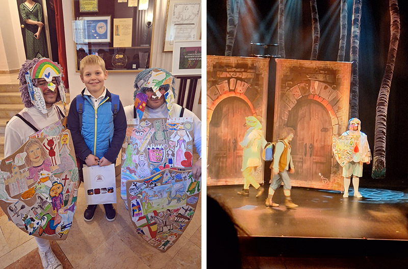 Kokavecz Attila 3. b osztályos tanuló úgy gondolta, hogy egy lovagot rajzol le, aki egy sárkánnyal vív meg. A rengeteg kidolgozott alkotás közül Attila rajza díjazott lett. A csodás ajándékok mellett- melyet a színházban az előadásban szereplő lovagoktól vehetett át, alkotása a lovagok pajzsán is megtekinthető volt az előadás közben.