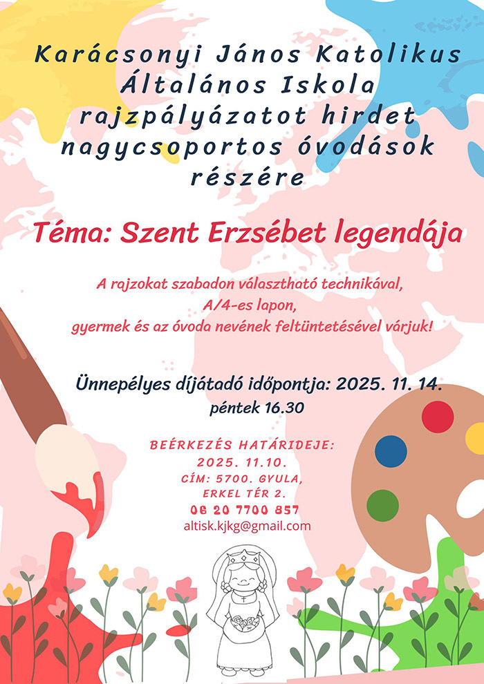 A veszélyhelyzetre való tekintettel a 2021/2022. évi tanévre történő iskolai beíratás a Karácsonyi János Katolikus Általános Iskolába a következőképpen történik: 1. E-mailben: A beiratkozáshoz szükséges adatlap letölthető itt, amelyet kérünk pontosan kitölteni, és azt 2021. 04. 16-ig az általános iskola e-mail címére elküldeni szíveskedjenek. Online beiratkozás esetén a beiratkozáshoz szükséges eredeti dokumentumok bemutatására a 2021/2022. tanév első napjáig (2021. szeptember 1.) kerülhet sor. A beiratkozáshoz szükséges további dokumentumokat itt találják. E-mail: altisk.kjkg@gmail.com 2. 2021. 04. 15-16-án 8-16 óráig a Karácsonyi János Katolikus Általános Iskola (Gyula, Erkel tér 2.) előterében ennek kitöltésére és leadására a megfelelő higiéniai szabályok betartásával személyesen is lehetőséget biztosítunk. Tel.: 06 20 7700857 Legkésőbb 2021. 04. 23-án írásban, vagy elektronikus úton értesítjük a szülőket a felvételi döntésről. Köszönettel: Szücs Viktória intézményegység-vezető |