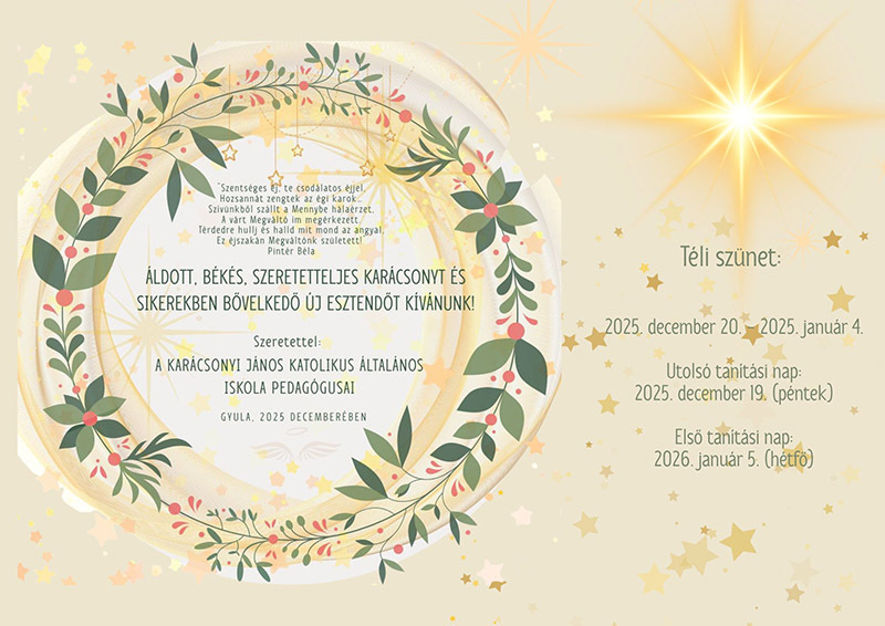 Kedves Szülők! István bácsi mellett már jó néhány éve én szoktam lenni a gyerekek tyúkanyója. Mindamellett, hogy lényeges számomra a játékosság, a humor és a tévedés lehetőségének a szabadsága, a legfontosabbnak mégis a gyermekek érzelmi nevelését tartom. Feleségként és két kislány anyukájaként jól tudom, milyen nehéz a szülőknek gyermeküktől elszakadniuk, ezért közösségünkben a családias, közvetlen légkört igyekszünk megteremteni, hogy minden gyerek otthon érezhesse magát iskolánkban. Tanítói pályafutásomat 2004-ben egy kis közösségben kezdtem a Dobozi Általános Iskolában. 2015-től nyílt lehetőségem a Karácsonyi János Katolikus Általános Iskola nagyszerű közösségébe bekerülni. Azóta is itt tanítok, főként matematikát és rajzot, és jelenleg fejlesztőpedagógusnak tanulok, a Debreceni Egyetemen. Amennyiben úgy gondolják, hogy a mai világban egyre fontosabb az általunk lényegesnek tartott értékek közvetítése, akkor gyermeküket szeretettel várjuk iskolánkba.