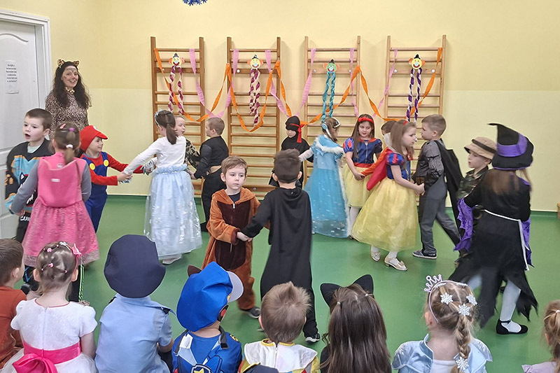 Farsangi mulatsággal űztük el a telet az óvodában. A gyerekek és a felnőttek egyaránt jelmezbe bújva mulattak.