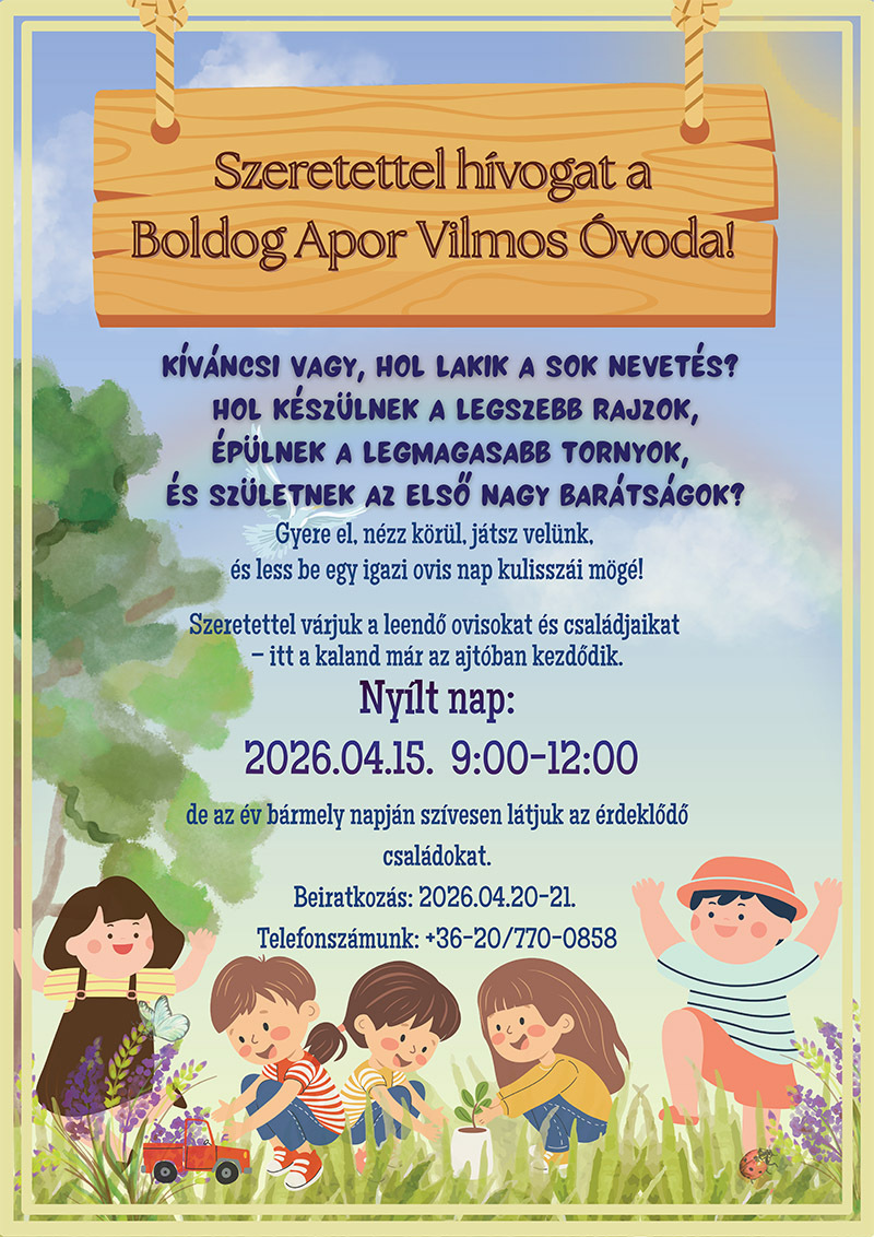 Kedves Családok! Szeretettel várjuk a Boldog Apor Vilmos Katolikus Óvodánkba 2023.12.31-ig 3. életévüket betöltő gyermekeket! |